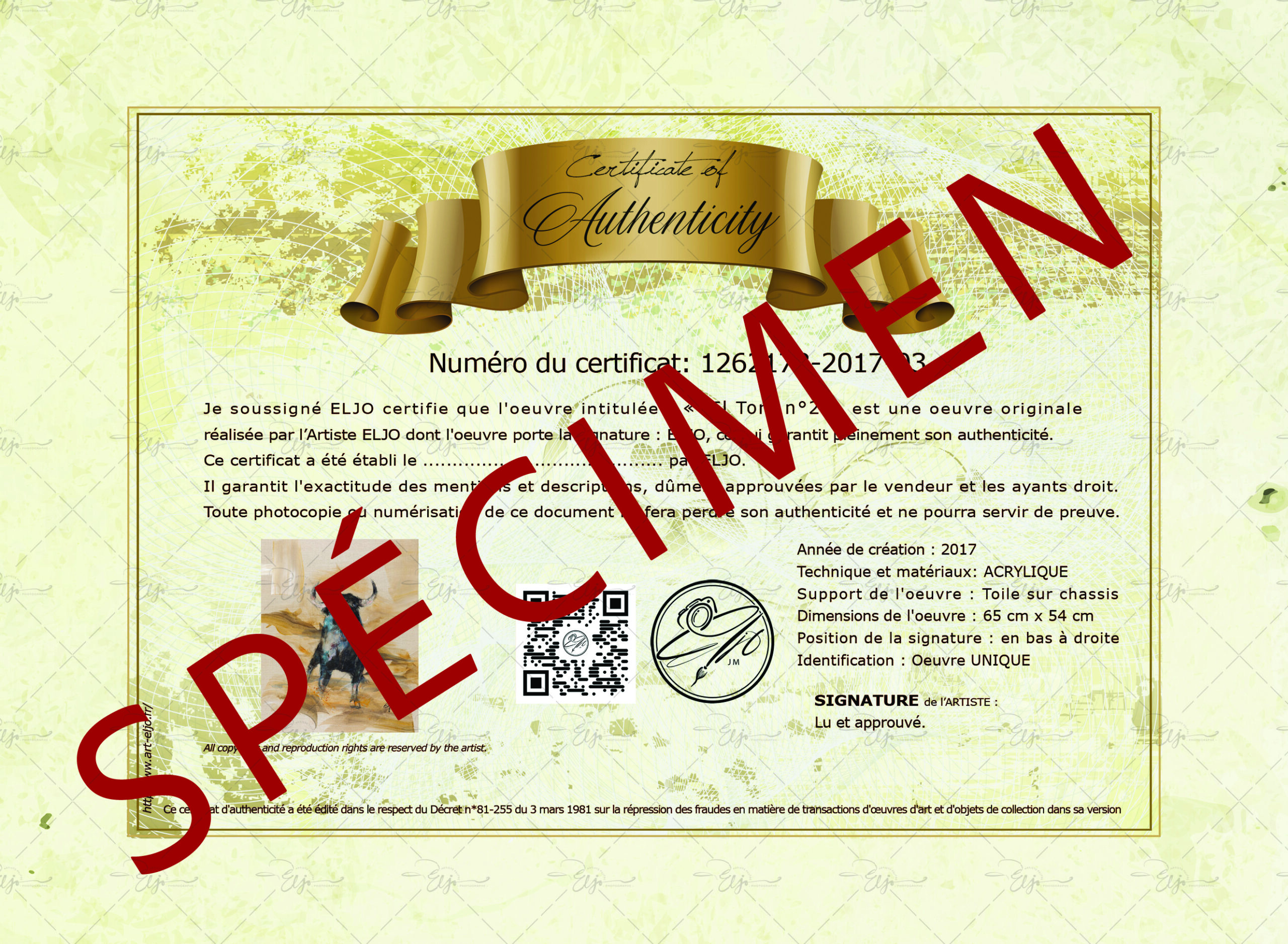 Chaque peinture ou dessin est vendu avec un certificat d’authenticité unique, fourni dès réception de l’œuvre.
