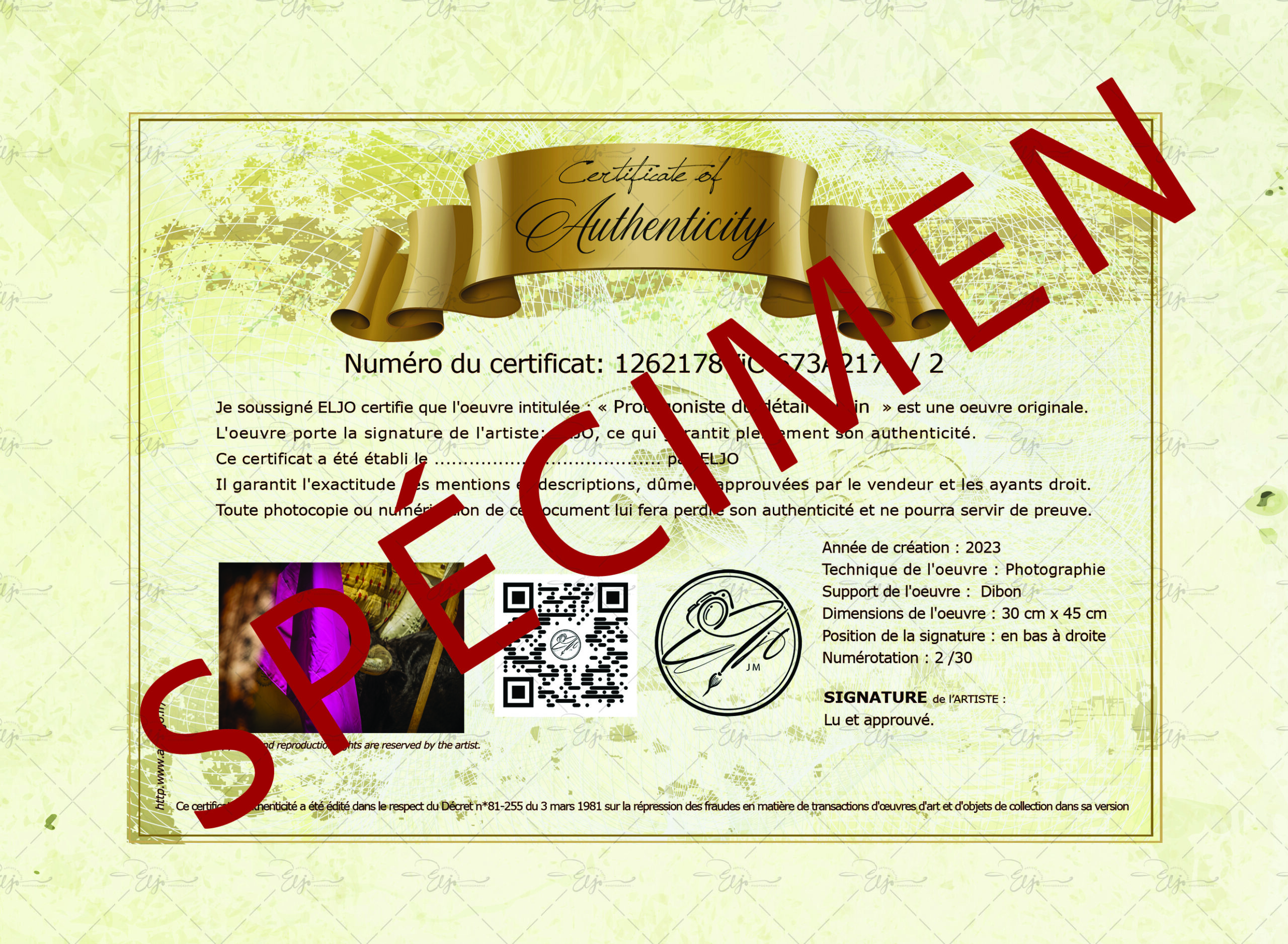 - Visualiser le modèle de certificat d’authenticité d’une photographie